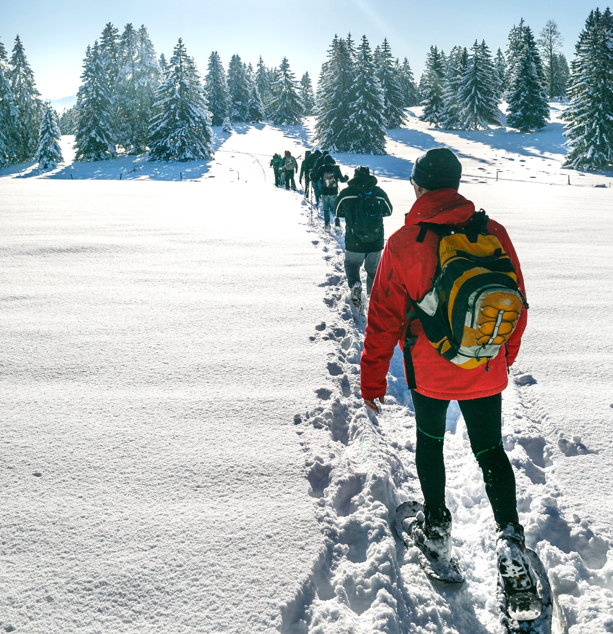 Rendez-vous avec nos guides passionnés pour le départ d’une randonnée en raquettes. Équipés pour arpenter la neige fraîche, vous partirez à la découverte des paysages montagnards .